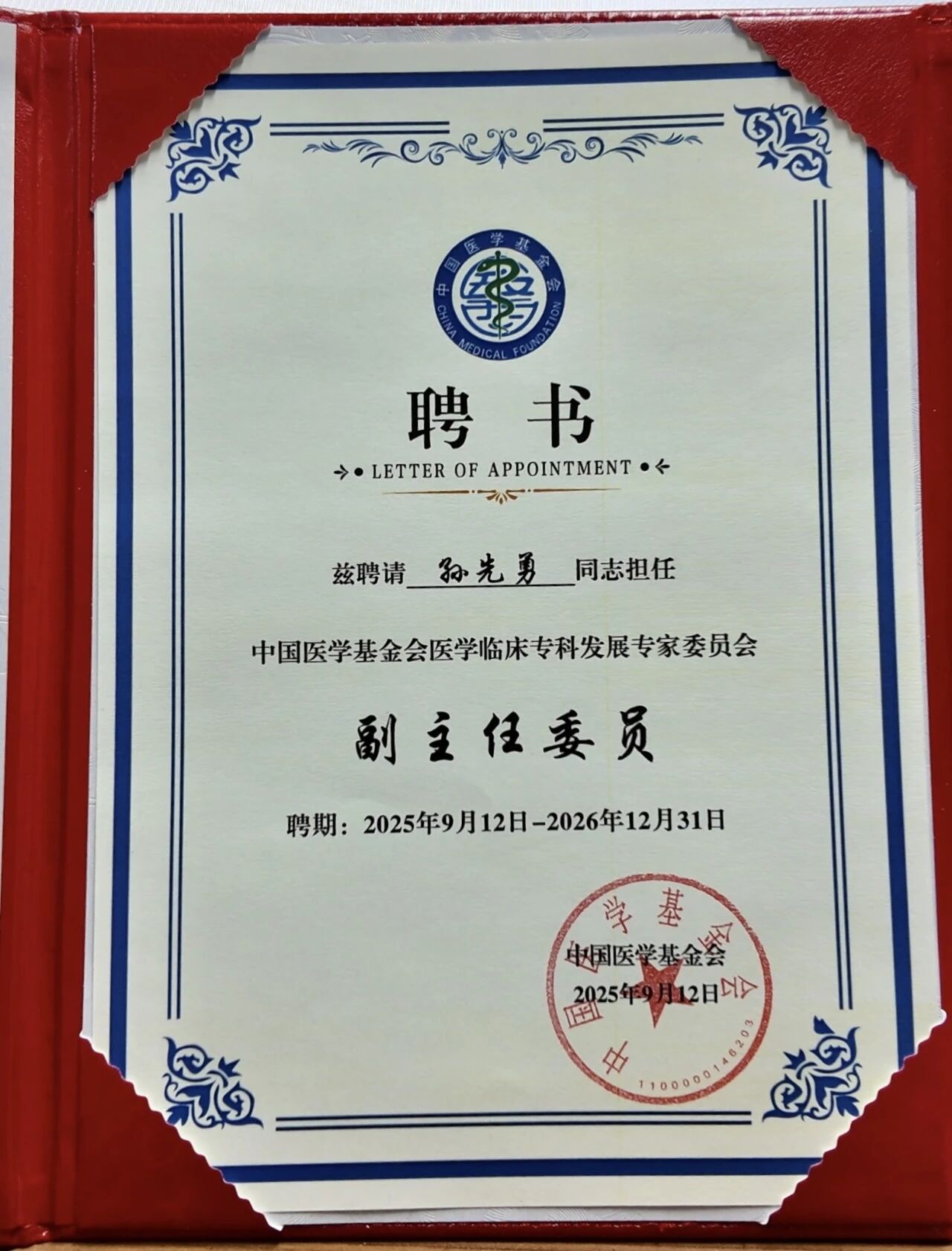 主旨论坛后,权威学术与行业机构聘任仪式顺利举行,孙先勇教授因其在玻璃体视网膜病、糖尿病视网膜病变等领域的深厚造诣与行业影响力,获聘为中国医学基金会医学临床专科发展专家委员会副主任委员。此次聘任不仅是对孙先勇教授个人专业能力的高度认可,更是对其长期以来推动眼科专科发展、助力规范化建设贡献的充分肯定,未来他将依托该平台,为医学临床专科发展提供战略性、前瞻性专业指导,推动优质医疗资源下沉与行业协同发展。